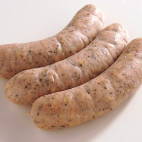 Combine all ingredients, mix well and stuff into sheep casing. To cook, broil, bake or fry in butter.