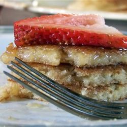 2. Heat a large skillet over medium heat, and coat with cooking spray. Pour 1/4 cupfuls of batter onto the skillet, and cook until bubbles appear on the surface. Flip with a spatula, and cook until browned on the other side. Continue with remaining batter.