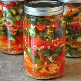 Slice hot peppers (use rubber gloves!!) and celery. Add garlic and oregano and cover with water and 2 cups canning salt. Let set overnight or 6 to 8 hours. Rinse and drain well. Slice olives and add to pepper mix. Bring to boil oil and vinegar. Add pepper mixture and bring to boil and can in sterilized pint jars.