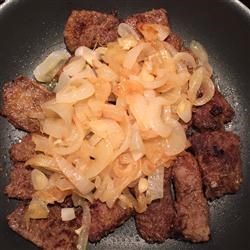 1. Gently rinse liver slices under cold water, and place in a medium bowl. Pour in enough milk to cover. Let stand while preparing onions. (I like to soak up to an hour or two - whatever you have time for.) This step is SO important in taking the bitter taste of the liver out.