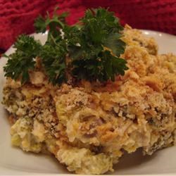 4. Bake uncovered in preheated oven for 45 minutes, until heated through and browned on top.