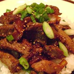 1. In a large resealable plastic bag, combine soy sauce, sesame oil, sesame seeds, garlic, sugar, salt, black pepper, and MSG. Place beef, carrots, and onions in the bag; seal, and shake to coat the vegetables and beef with the sauce. Refrigerate for at least 2 1/2 hours. I prefer to marinate mine overnight.