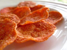 Place turkey pepperoni slices in a single layer & micro approx. 30-60 seconds.