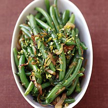 Place green beans in a serving bowl or platter and sprinkle with gremolata. Yields about 3/4 cup of green beans and 1 teaspoon of gremolata per serving.