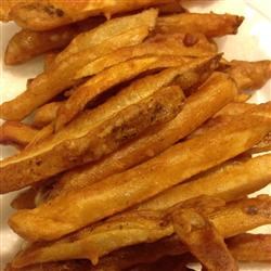 1. Slice potatoes into French fries, and place into cold water so they won't turn brown while you prepare the oil.