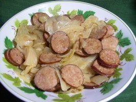 1 Coat the slow cooker crock with cooking spray. Add all the ingredients except the kielbasa to the crock, tossing so that the cabbage is well-coated with the broth and seasonings. Top mixture with kielbasa.