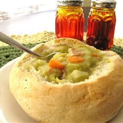 2. Place bacon, split peas, hash brown potatoes, onion, carrots, celery, garlic, black pepper, red pepper flakes, and chicken broth in a slow cooker; stir to combine.